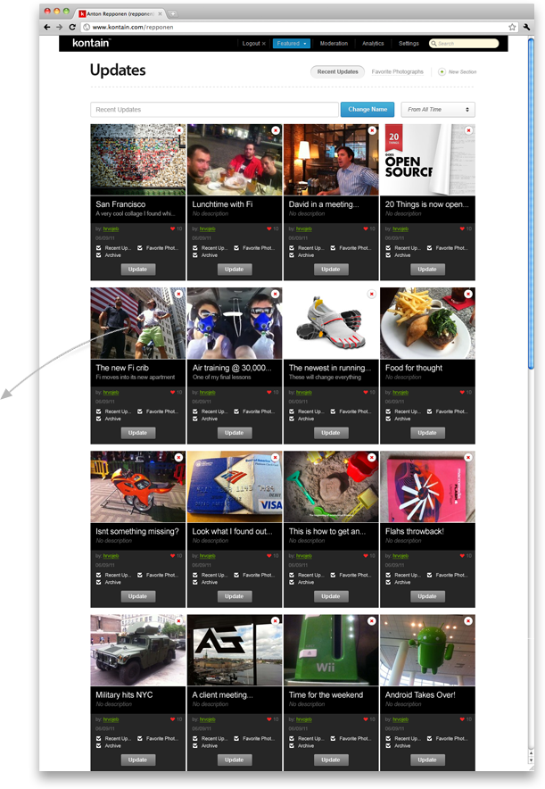 Users can easily flag any post and select from a list of categorized options. Users can also submit a message along with the report. The report automatically appears in the CMS grid once received. A moderator can quickly address the issue by deleting the update, user or ignoring the request.